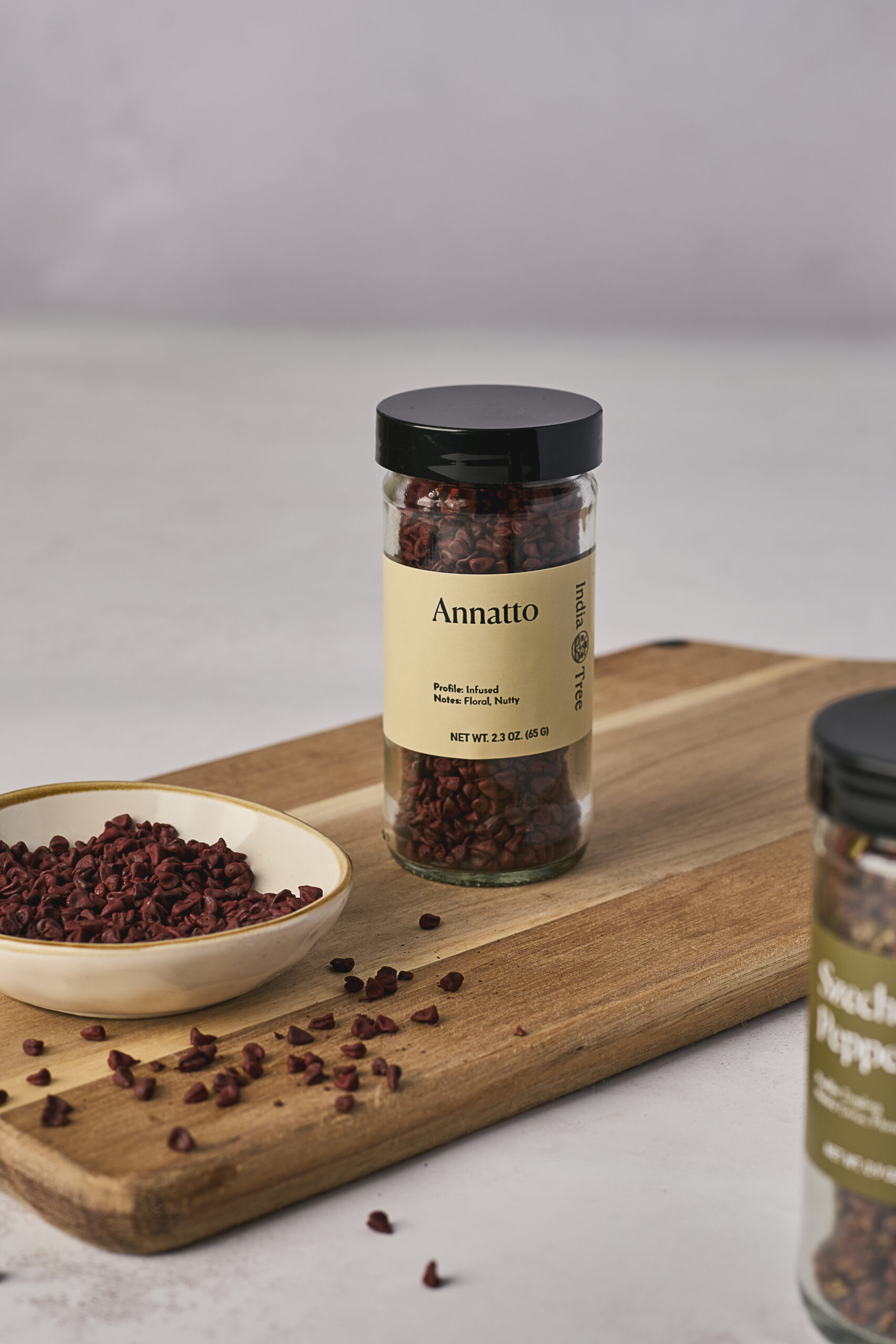 India Tree Annatto Seed brings warm earthiness, subtle pepper, and rich natural color to rice, stews, oils, and slow-simmered dishes. Gently bloom whole annatto seeds in warm oil to release deep orange-red pigment, then use the infused oil to cook rice, beans, or sofrito. Grind or crush as needed for achiote pastes, marinades, and braises, keeping the flavor clean and ingredient-first with no fillers.