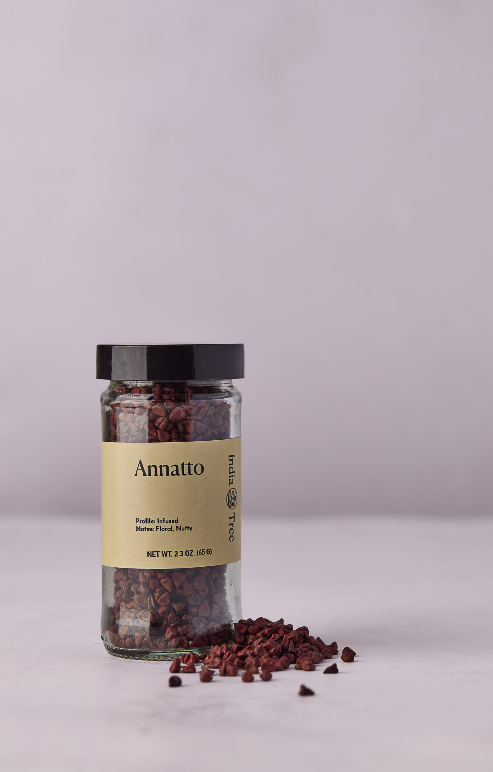 Annatto seed, also known as achiote seed, for natural color and warm, earthy flavor in rice, stews, oils, and marinades — India Tree pantry spices.