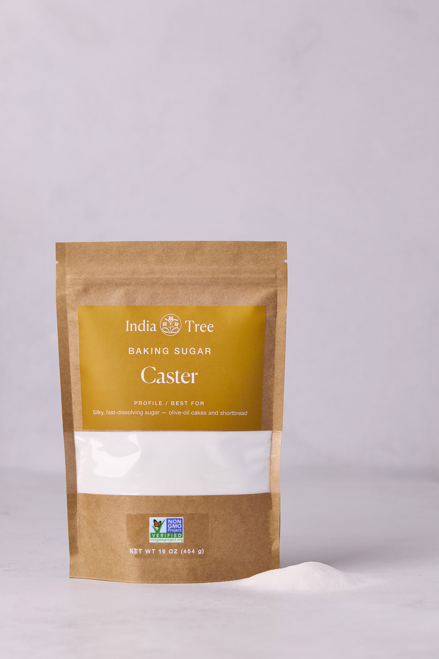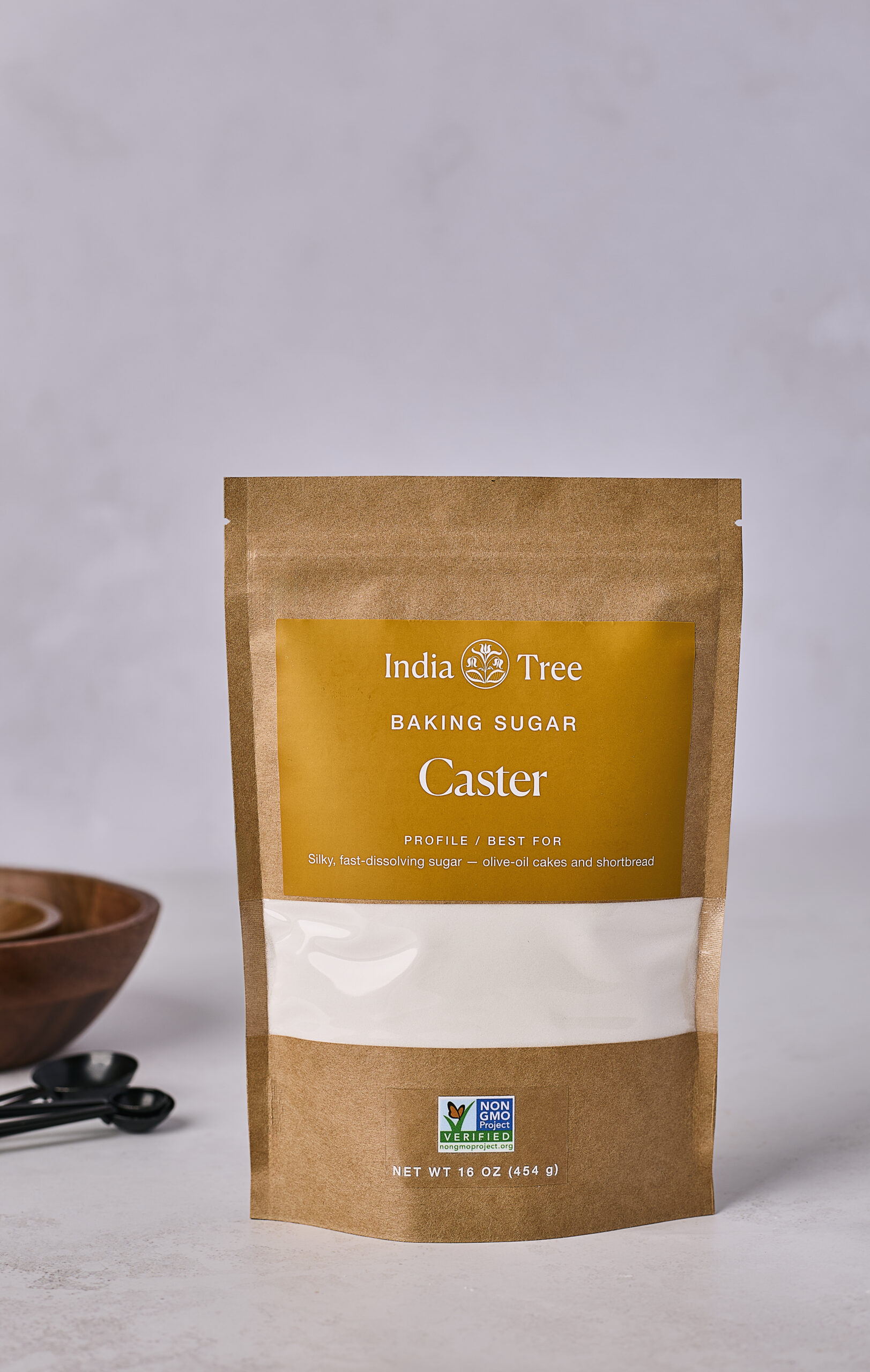 Superfine caster sugar milled from pure cane sugar for smooth incorporation and fast dissolve in cakes, pastries, and meringues – part of the Premium Baking Sugars and India Tree Baking Sugars collections from India Tree.