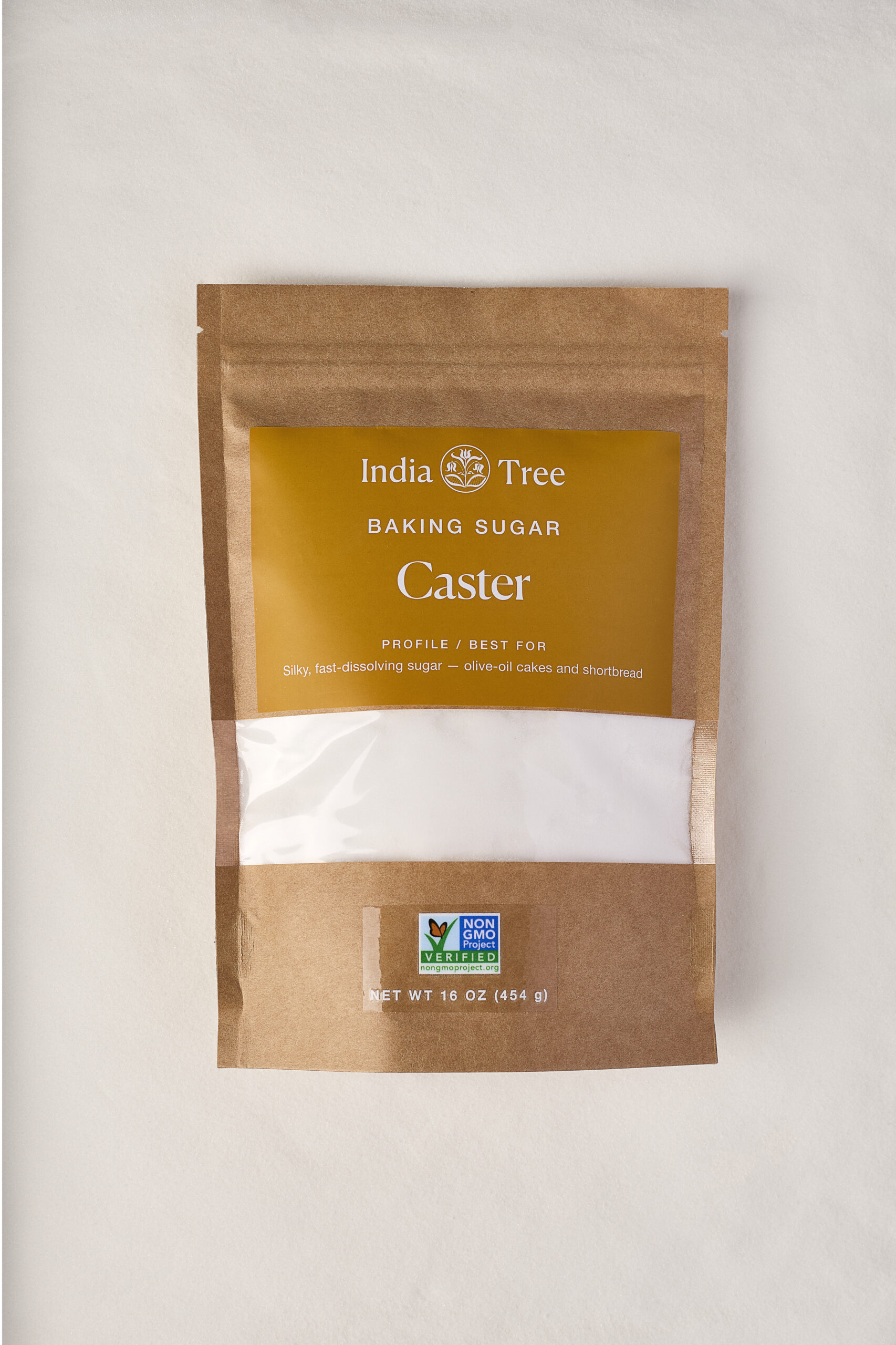 Superfine caster sugar milled from pure cane sugar for smooth incorporation and fast dissolve in cakes, pastries, and meringues – part of the Premium Baking Sugars and India Tree Baking Sugars collections from India Tree.