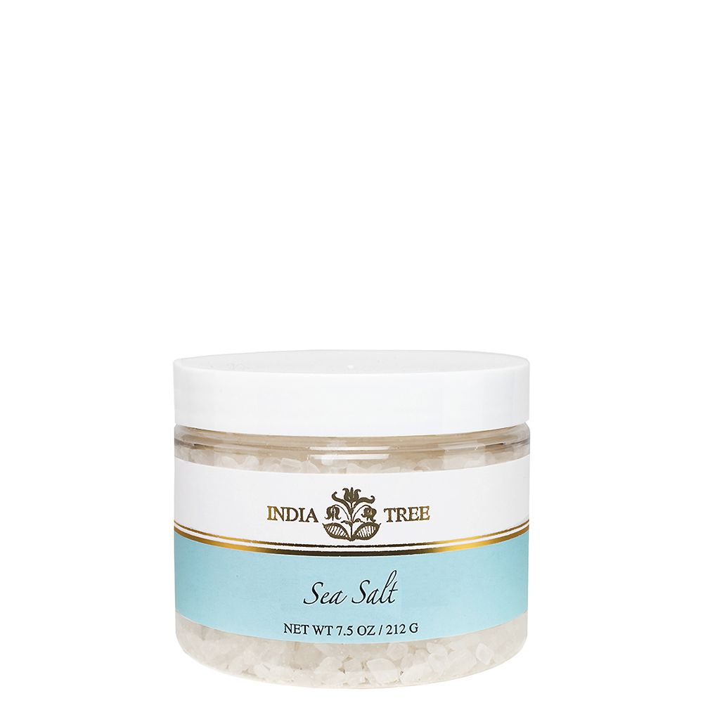 Coastal sea salt with coarse grains and natural mineral depth for modern cooking, roasted vegetables, warm grain bowls, and brothy dishes – part of the Savory Seasonings and Salts collections from India Tree.