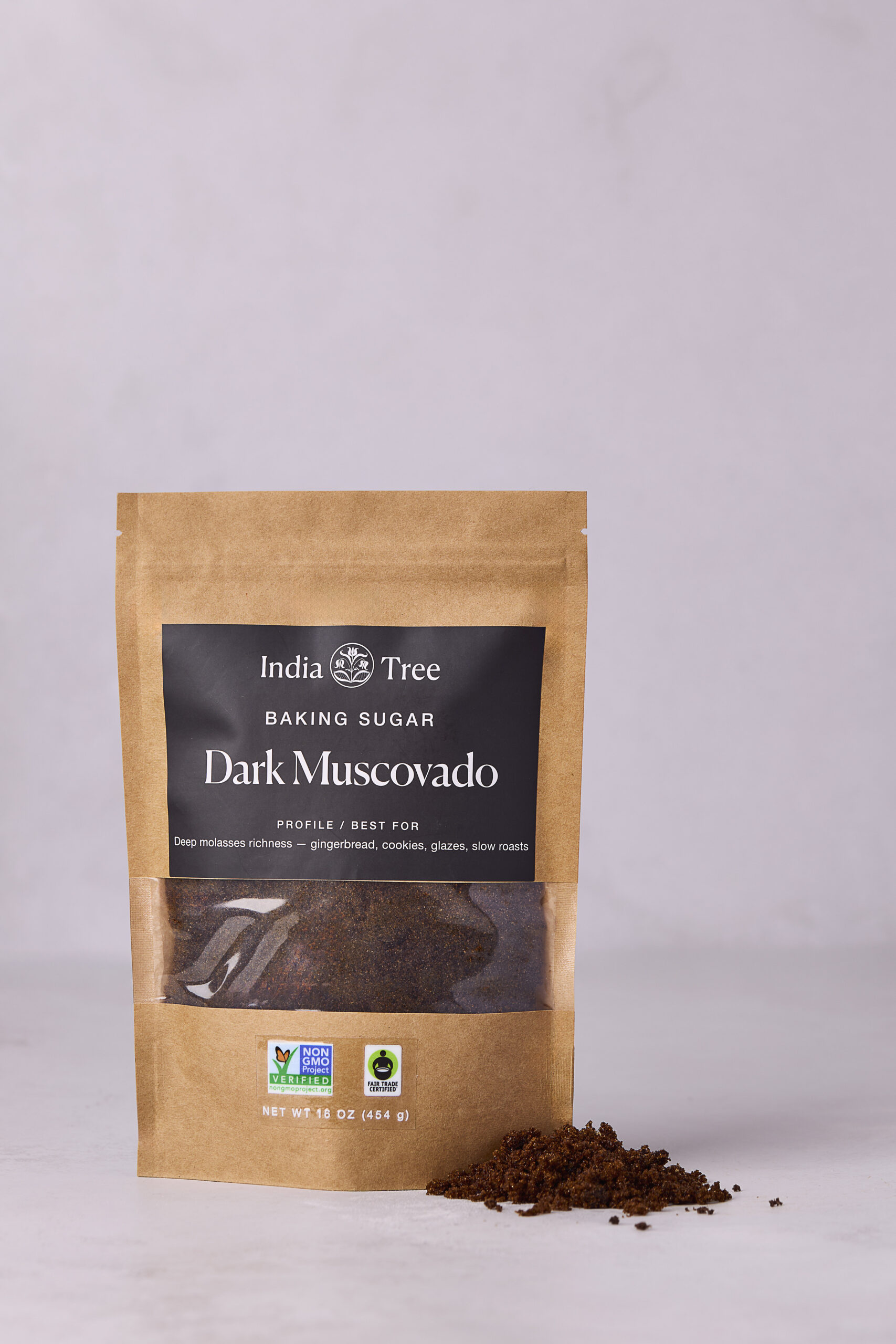 Dark muscovado sugar with syrup-dark richness, burnt caramel intensity, and molasses depth for black coffee caramel, roasted fig compote, and brown-butter brownies – part of the Premium Baking Sugars and India Tree Baking Sugars collections from India Tree.