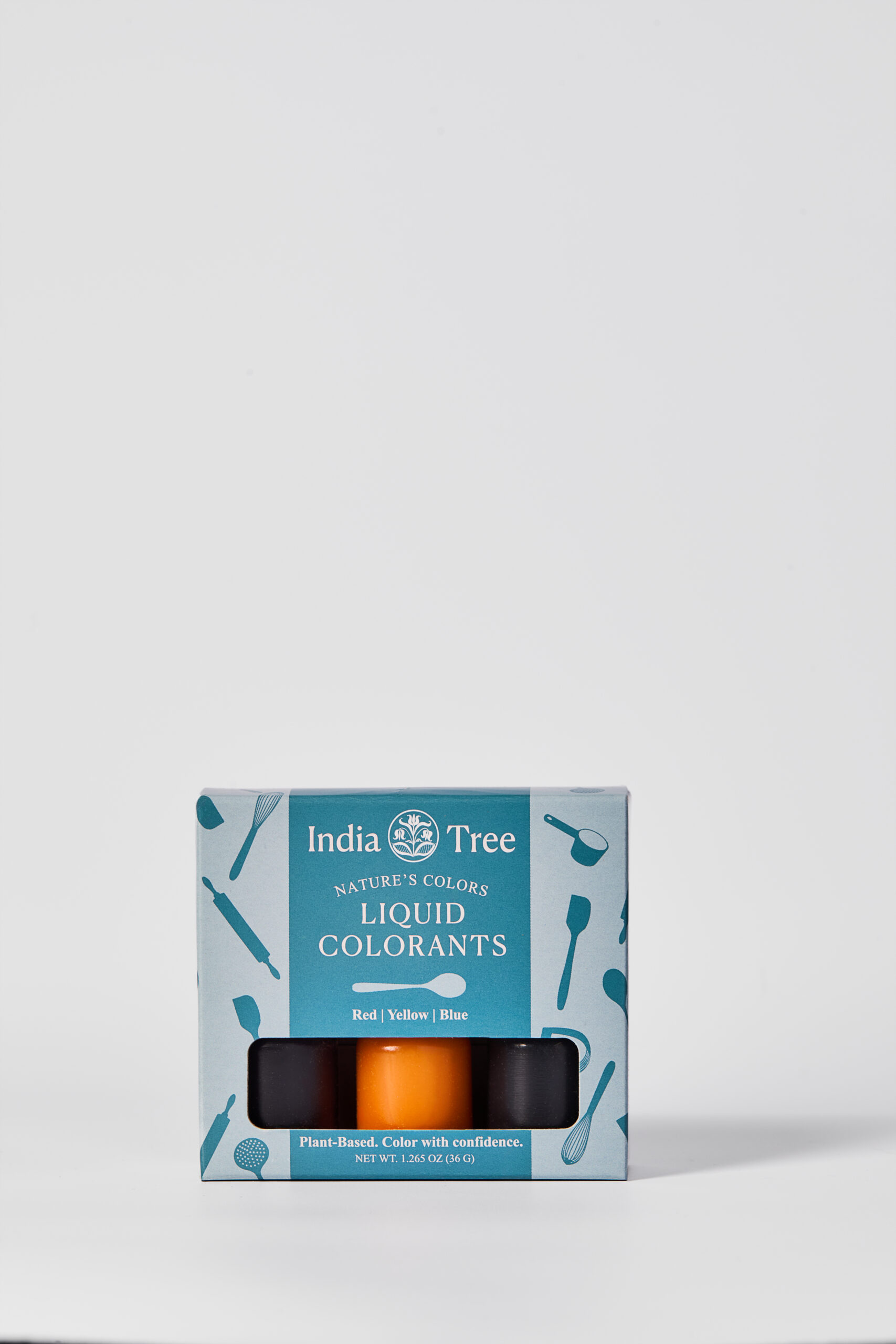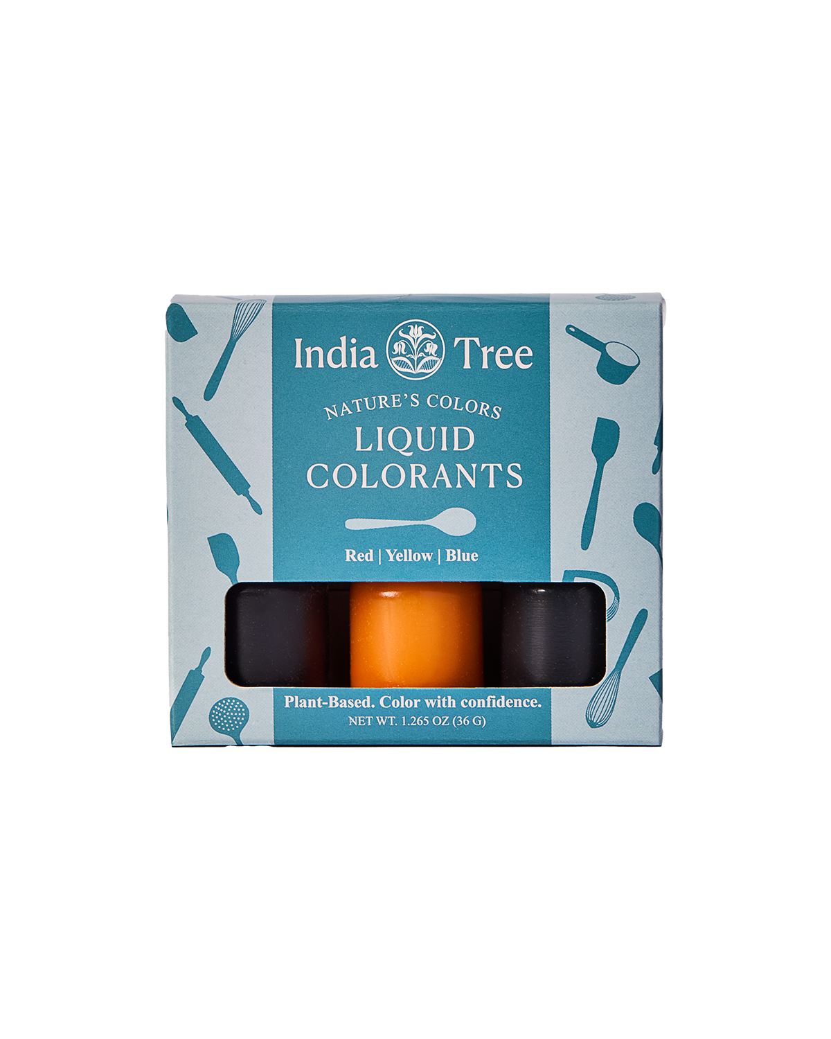 Natural liquid food coloring set in red, yellow, and blue with plant-based, dye-free color for baking, frosting, icing, and candy - part of the Nature’s Colors Liquid Food Coloring collection and Nature’s Colors Collection from India Tree.