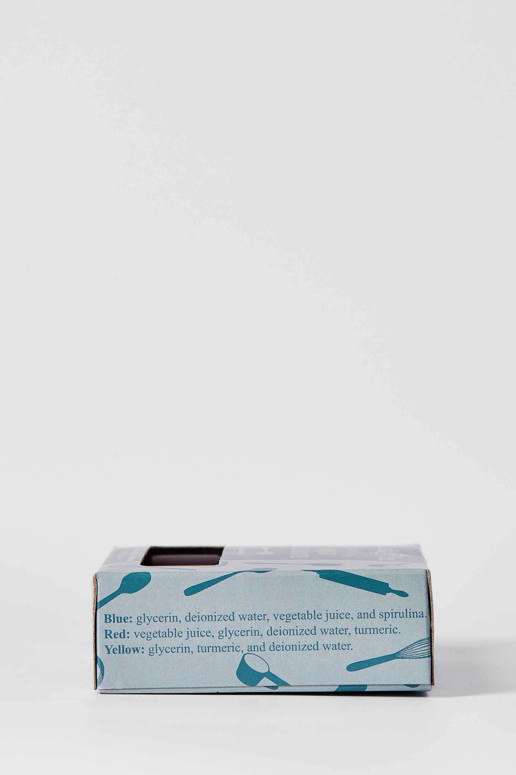 Blue: Glycerin; Deionized Water; colored with Vegetable Juice and Spirulina.