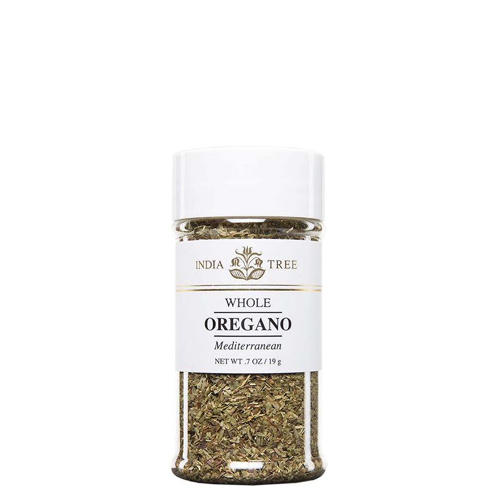 Mediterranean Oregano - dried oregano leaves with savory, herbal brightness for pizza, tomato sauces, Greek salads, marinades, and dressings. Synonyms: Greek oregano, dried oregano leaves, oregano herb.