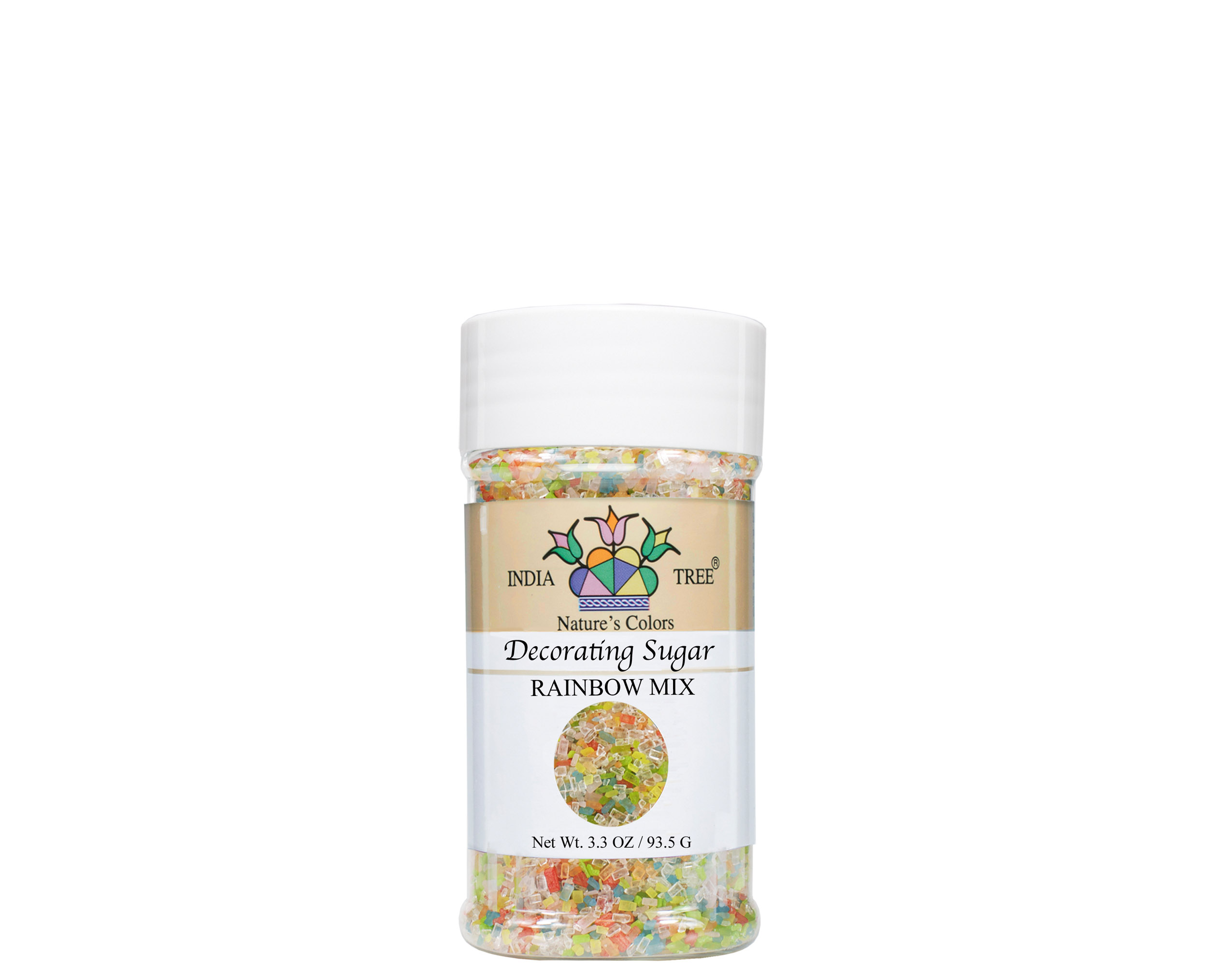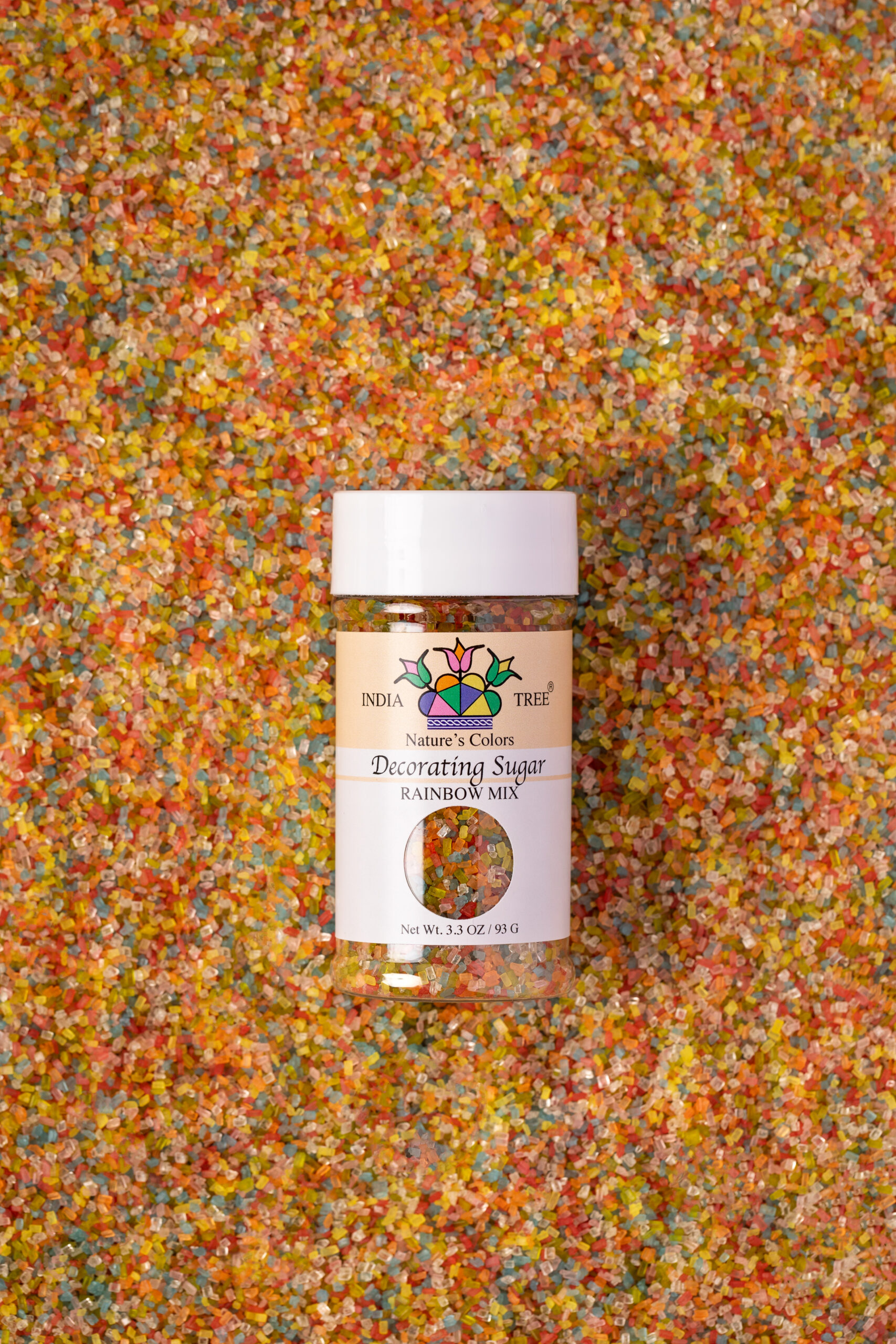 Natural rainbow sanding sugar (plant-based decorating sugar) - dye-free, vegan, non-GMO. Bulk bakery sugar for cookies, cakes, and holiday desserts from India Tree Nature’s Colors.
