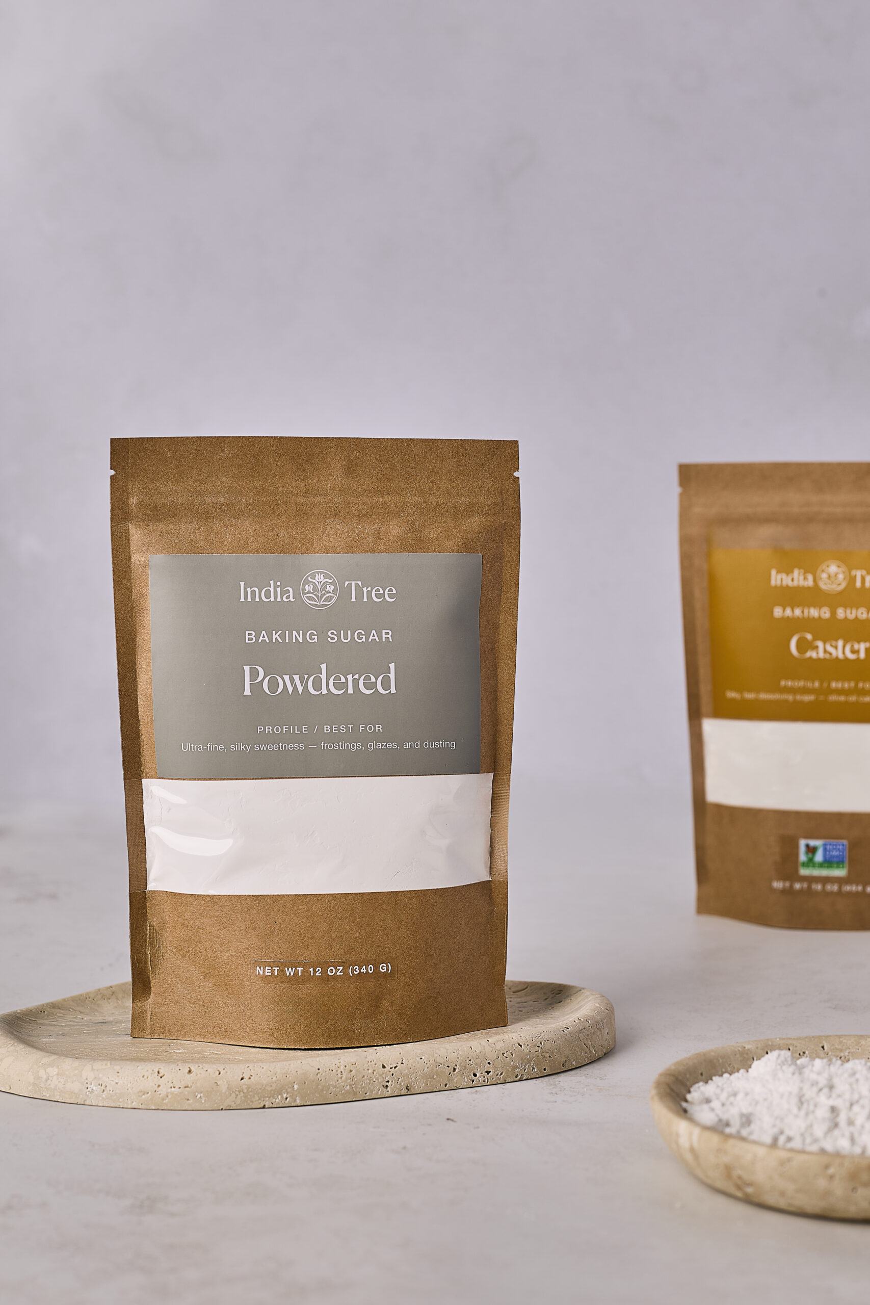 10X powdered sugar made from powdered cane sugar with an ultra-fine grind for smooth icing, glazes, frosting, and dusting - part of the Premium Baking Sugars and India Tree Baking Sugars collections from India Tree.